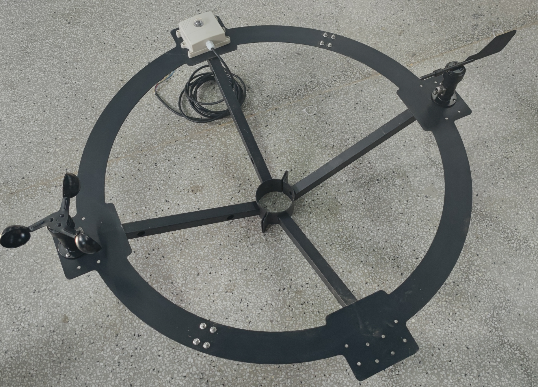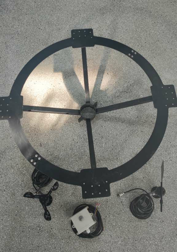 1、傳感器固定:圓盤正前方固定光照傳感器,左右兩側固定風速、風向傳感器